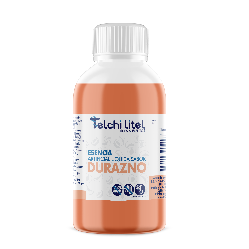 Esencia de durazno, concentrada y lista para uso en repostería, heladería, bebidas o productos cosméticos. Alta estabilidad y durabilidad del aroma. Envase de 250 mL con tapa rosca. Ideal para aplicaciones alimentarias o de elaboración artesanal.