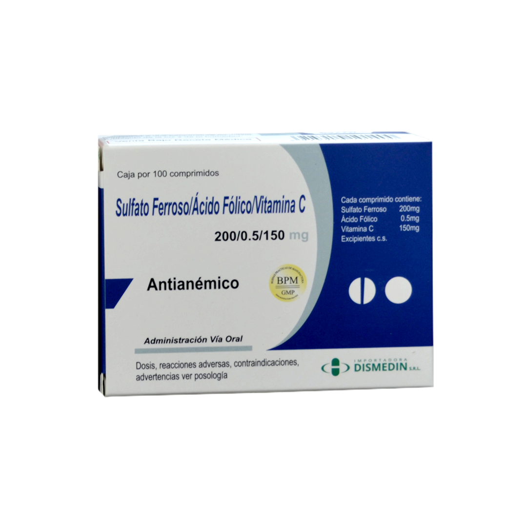 SULFATO FERROSO /ACIDO FOLICO /VITAMINA C x 100comp.