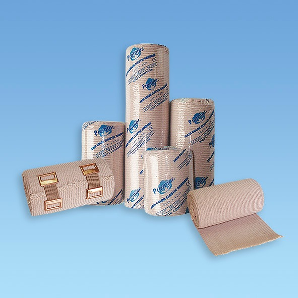 Venda elástica de compresión media, ideal para esguinces, lesiones o sujeción de apósitos.