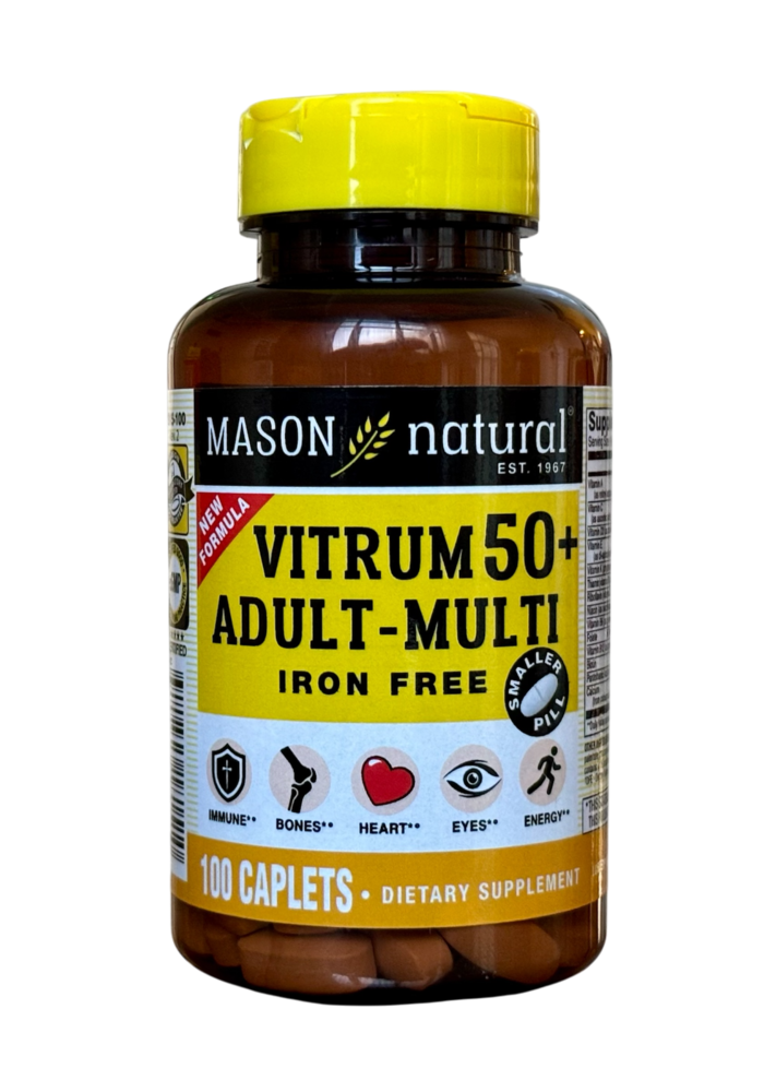 Multivitamínico para adultos mayores, sin hierro.